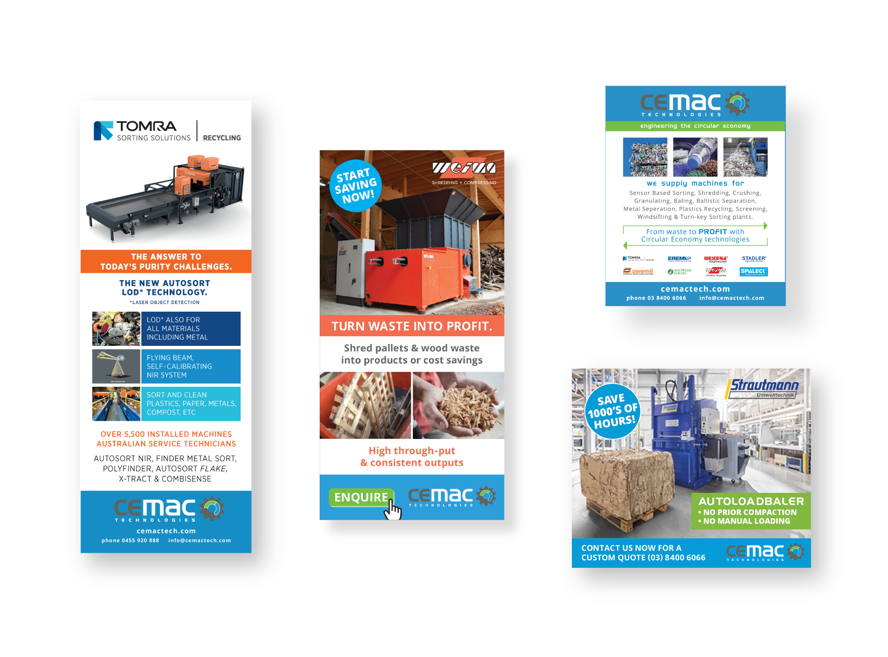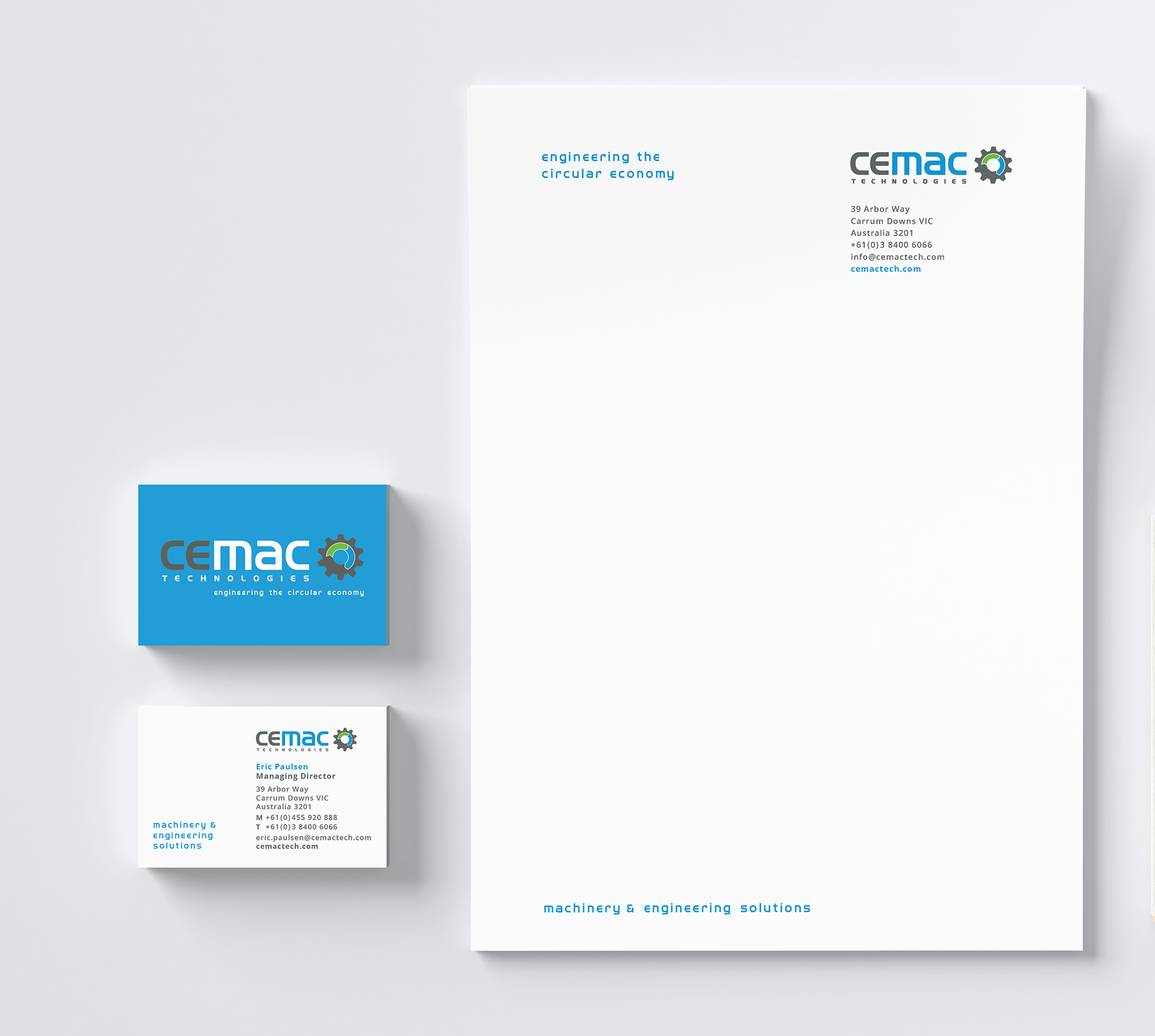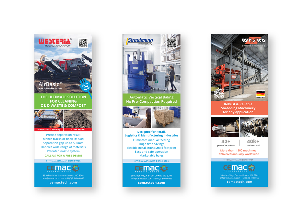 Supplying advanced technologies and engineering solutions for the circular economy, Cemac needed a brand that felt professional, direct and modern. Their signature colours and clean design style were carried consistently across all touch points from stationery, magazine advertising and exhibition stands to signage, digital communications, promotional materials and corporate apparel.